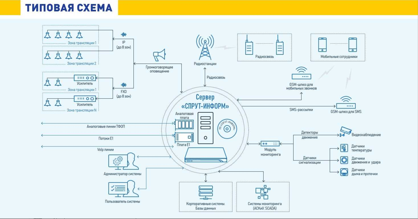 Автономное устройство для оповещения по различным типам каналов АПК Спрут-Информ CU Enterprise 2Tb 1U